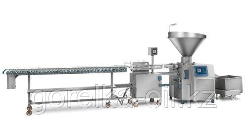 Risco RS 274 RS 279 Сосисочная линия с навешивателем, обеспечивает быстрое и точное производство колбасы, хот-догов, сосисок, чоризо и других видов продукции. Вакуумный шприц передовой серии Risco мягко и точно подаёт продукт на ленточную систему, которая выравнивает его и передает его на навесной транспортёр RS 279 точным и контролируемым образом. Скорость, с которой происходит этот процесс, достигается тем, что развешивание продукта на рейках для дальнейшего копчения и обработки происходит автоматически. Фронтальная система навески Risco обеспечивает значительное увеличение производительности, что даёт явные конкурентные преимущества производству.